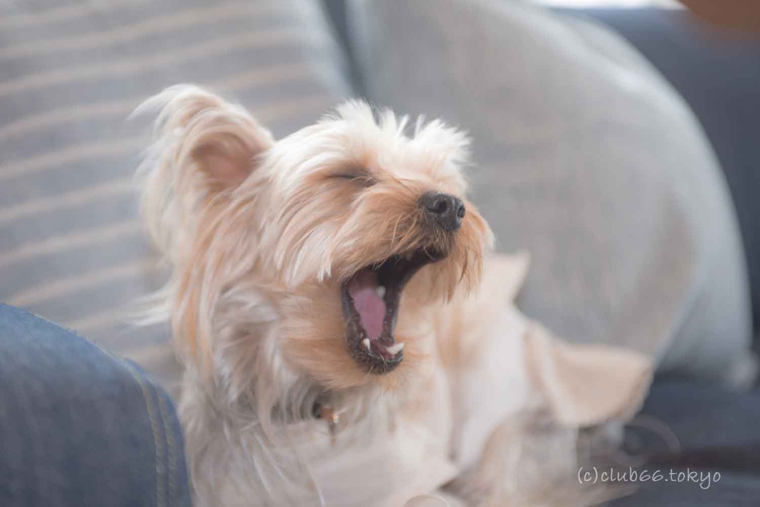 そういわれてみると毛をブラッシングしたり、目やにをとったりするときに「ああ・・・・~」といやそうにあくびしてますね。人っぽくて2~3歳児の感じで接してしまうのでついつい「人」とだぶりますが、彼女は「犬」なのね、と認識していかなくてはならないですよね。