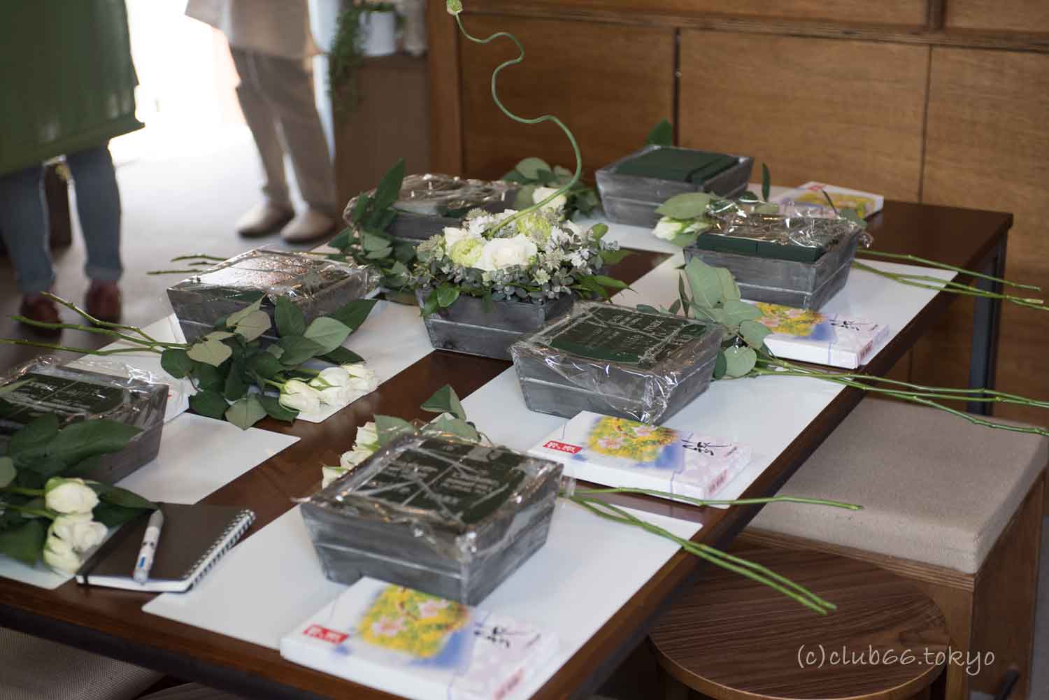 ただグリーンや花を置くだけではなく、その生命をより美しく輝かせる技術や感性が大切なんだと、プロの先生の熱い視線を見ながら思うのでありました。